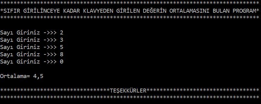 Console.WriteLine("*SIFIR GİRİLİNCEYE KADAR KLAVYEDEN GİRİLEN DEĞERİN ORTALAMASINI BULAN PROGRAM*");