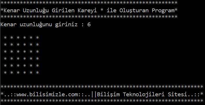 Kenar Uzunluğu Girilen Kareyi * ile Oluşturan Program